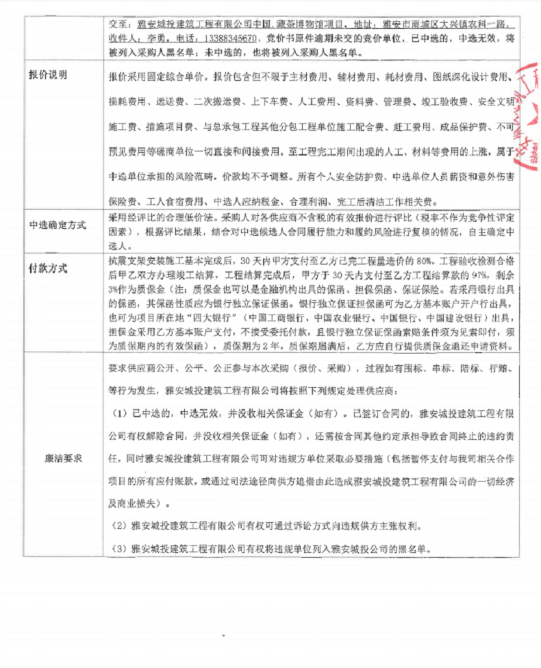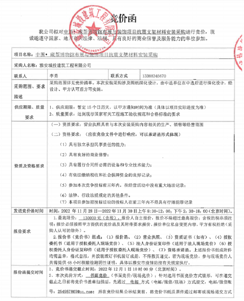 中國藏茶博物館布展與裝飾項(xiàng)目抗震支架材料安裝競價公告