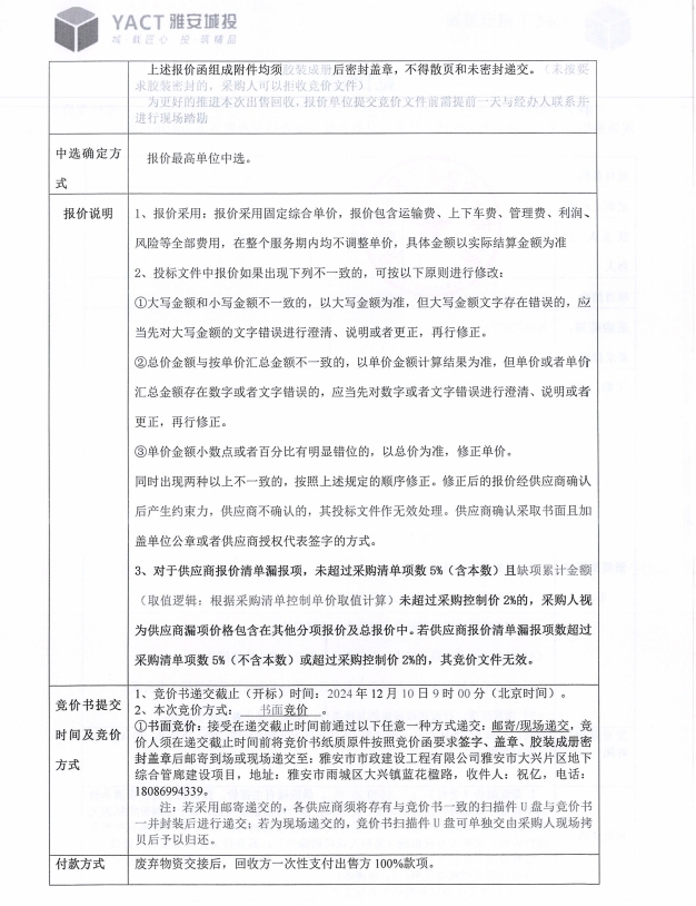 雅安市大興片區(qū)地下綜合管廊建設(shè)項(xiàng)目(二臺(tái)地庫(kù)房)廢圍擋出售競(jìng)價(jià)公告
